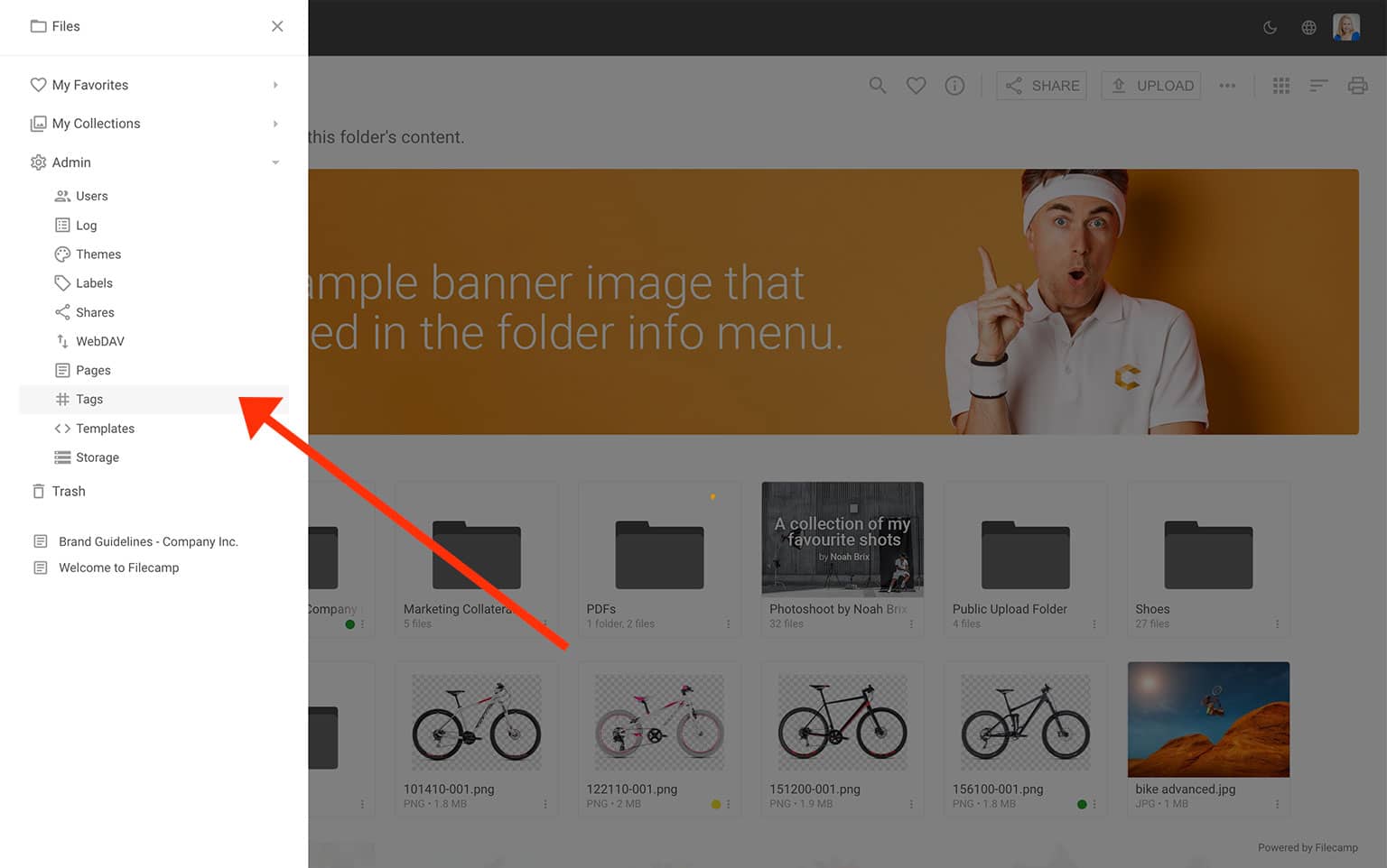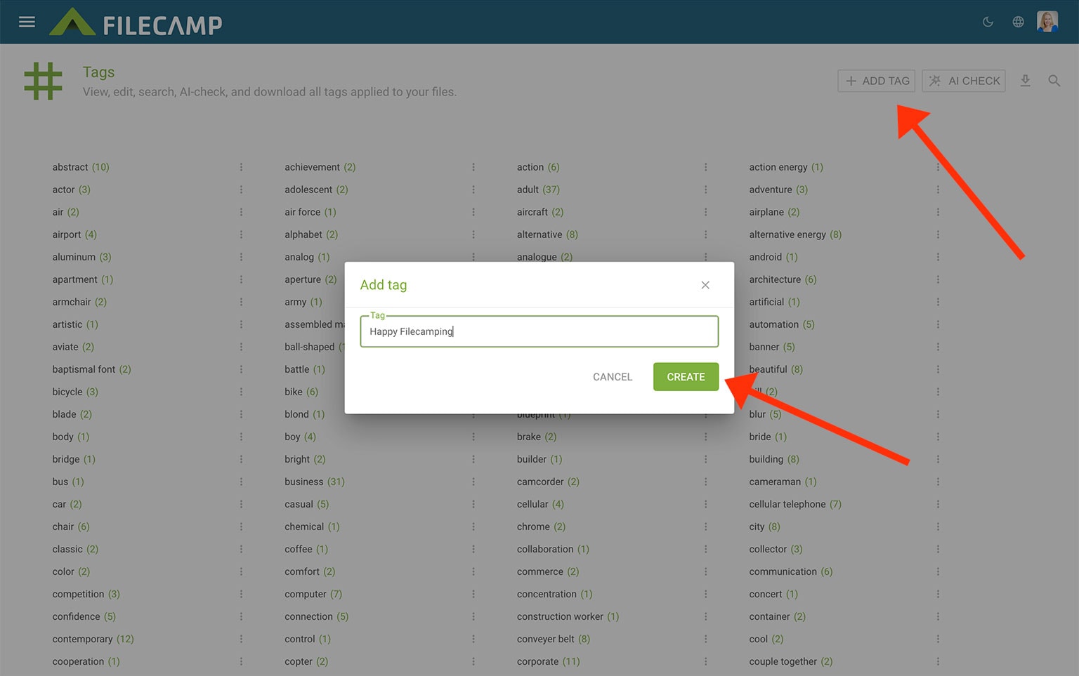 You will see a list of every tag in your account. Each tag shows how many files it is applied to. This includes both manually created tags and AI-generated tags.